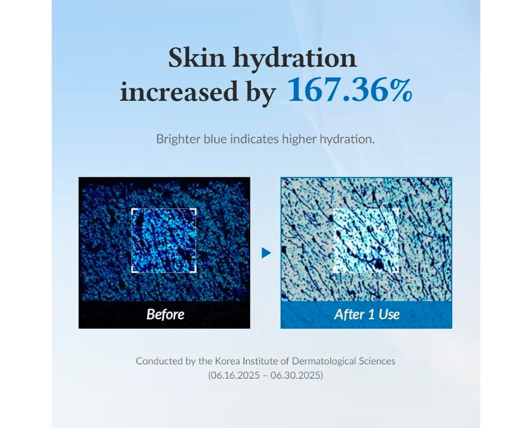 HIDRATACIÓN CLÍNICAMENTE PROBADA: Dermatológicamente probado para ser seguro para pieles sensibles y muestra una mejora del 5,31 % al ayudar a calmar la piel mientras aumenta la hidratación desde lo profundo en un 167,36 %.