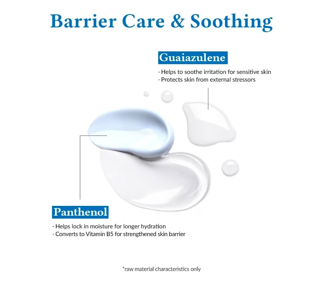 CUIDADO HIDRATANTE Y BARRERA: El pantenol ayuda a retener la humedad y a prevenir la pérdida de hidratación durante más tiempo. Enriquecido con guaiazuleno, reconforta y calma incluso la piel sensible frente a las agresiones externas.