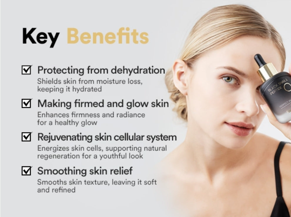 Our snail mucin korean ampoule made with black snail which has more powerful moisturizing & nourishing properties. It deeply hydrates for dry skin and boosts firmness & elasticity of the skin, making it a perfect choice for those concerned with aging.