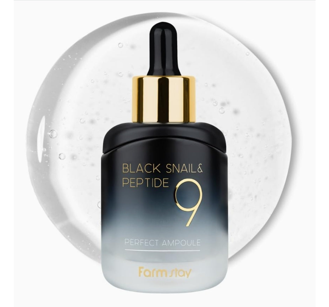 Farmstay Black Snail & Peptide9 Perfect Ampoule - Snail Mucin Serum for Elastic & Glow Skin, Boosting Radiance & Repairing Skin Barrier Serum