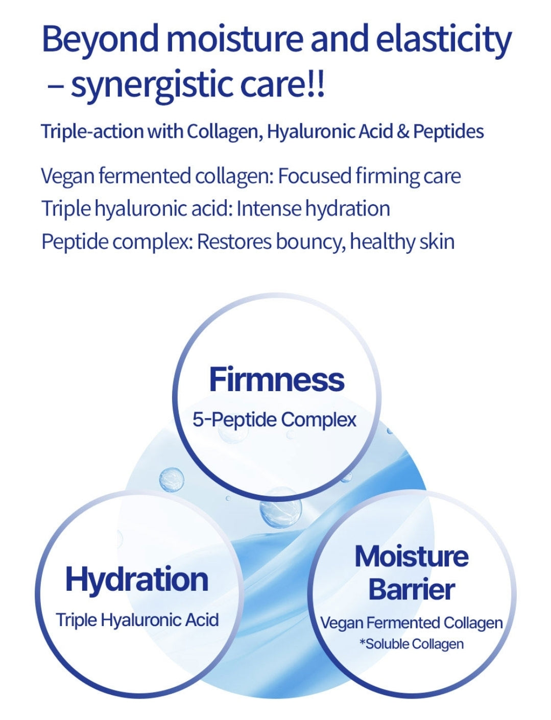 Collagen Water, Glycerin, Methylpropanediol, Cetyl Ethylhexanoate, Niacinamide, Chondrus Crispus Extract, Ceratonia Siliqua (Carob) Gum, Panthenol, Allantoin, Adenosine, Menthyl Lactate, Butylene Glycol, Centella Asiatica Extract, Soluble Collagen, Sodium Hyaluronate, Mannose, Phaseolus Radiatus Seed Extract, Hydrogenated Lecithin, Caprylic/Capric Triglyceride, Retinol, Polyglyceryl-10 Myristate, Tocopheryl Acetate, Hydrolyzed Hyaluronic Acid, Sodium Acetylated Hyaluronate, Glutathione, Copper Tripeptide-1, Acetyl Hexapeptide-8, Asiatic Acid, Asiaticoside, Madecassic Acid, Madecassoside, Oligopeptide-29, Oligopeptide-32, Palmitoyl Pentapeptide-4, Cellulose Gum, Xanthan Gum, Glucose, Glyceryl Stearate, PEG-100 Stearate, Potassium Chloride, Polyacrylate-13, Polyisobutene, Glucomannan, Sucrose, Polysorbate 20, Sorbitan Isostearate, Ethylhexylglycerin, 1,2-Hexanediol, Hydroxyacetophenone Vitamin Water, Glycerin, Methylpropanediol, Cetyl Ethylhexanoate, Niacinamide, Chondrus Crispus Extract, Ceratonia Siliqua (Carob) Gum, Panthenol, Allantoin, Adenosine, Menthyl Lactate, Butylene Glycol, Centella Asiatica Extract, Ascorbic Acid, Sodium Hyaluronate, Phaseolus Radiatus Seed Extract, Hydrogenated Lecithin, Caprylic/Capric Triglyceride, Retinol, Polyglyceryl-10 Myristate, Tocopheryl Acetate, Hydrolyzed Hyaluronic Acid, Glutathione, Sodium Acetylated Hyaluronate, Copper Tripeptide-1, Acetyl Hexapeptide-8, Asiatic Acid, Asiaticoside, Madecassic Acid, Madecassoside, Oligopeptide-29, Oligopeptide-32, Palmitoyl Pentapeptide-4, Cellulose Gum, Xanthan Gum, Glucose, Glyceryl Stearate, PEG-100 Stearate, Potassium Chloride, Polyacrylate-13, Polyisobutene, Glucomannan, Sucrose, Polysorbate 20, Sorbitan Isostearate, Ethylhexylglycerin, 1,2-Hexanediol, Hydroxyacetophenone
