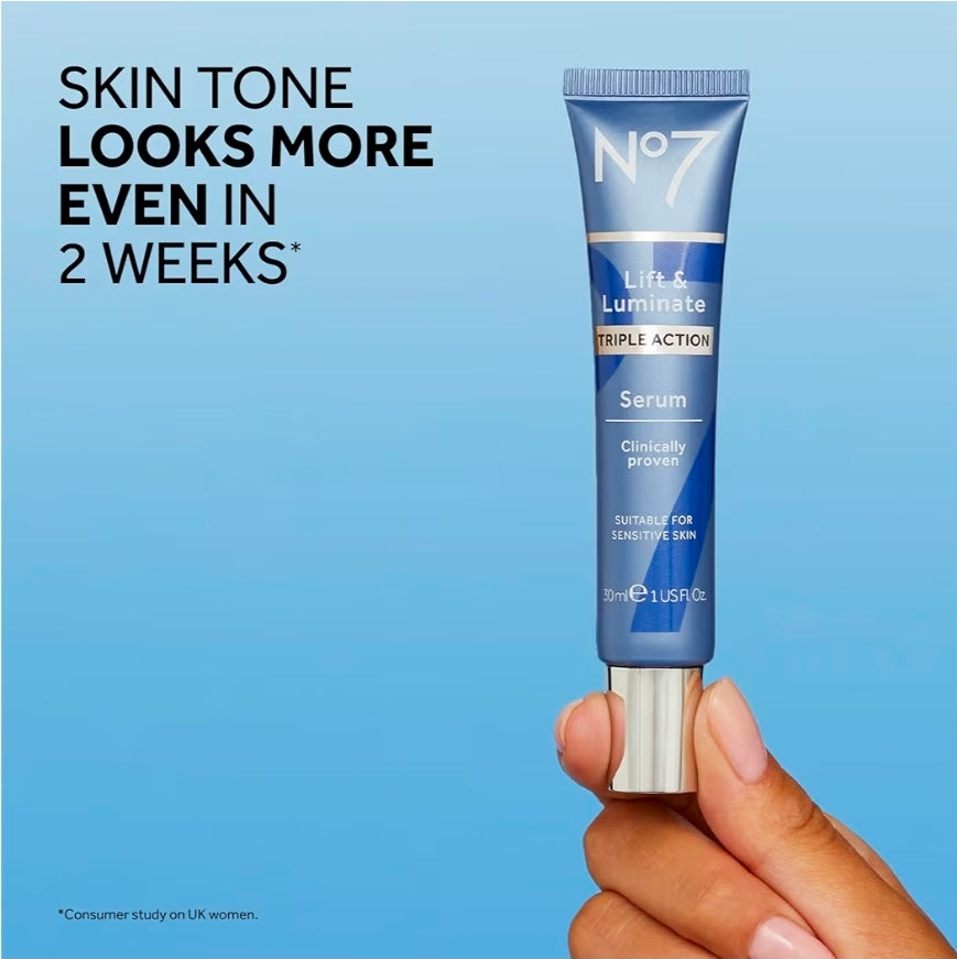 Anti-Aging Lift & Luminate Formula - This anti wrinkle face serum features Matrixyl 3000+: No7’s powerful anti-wrinkle peptide formula. Similar to a collagen serum, this also contains our unique Firming complex with Hyaluronic acid and Hibiscus. No7’s unique pigmentation complex with Vitamin C.