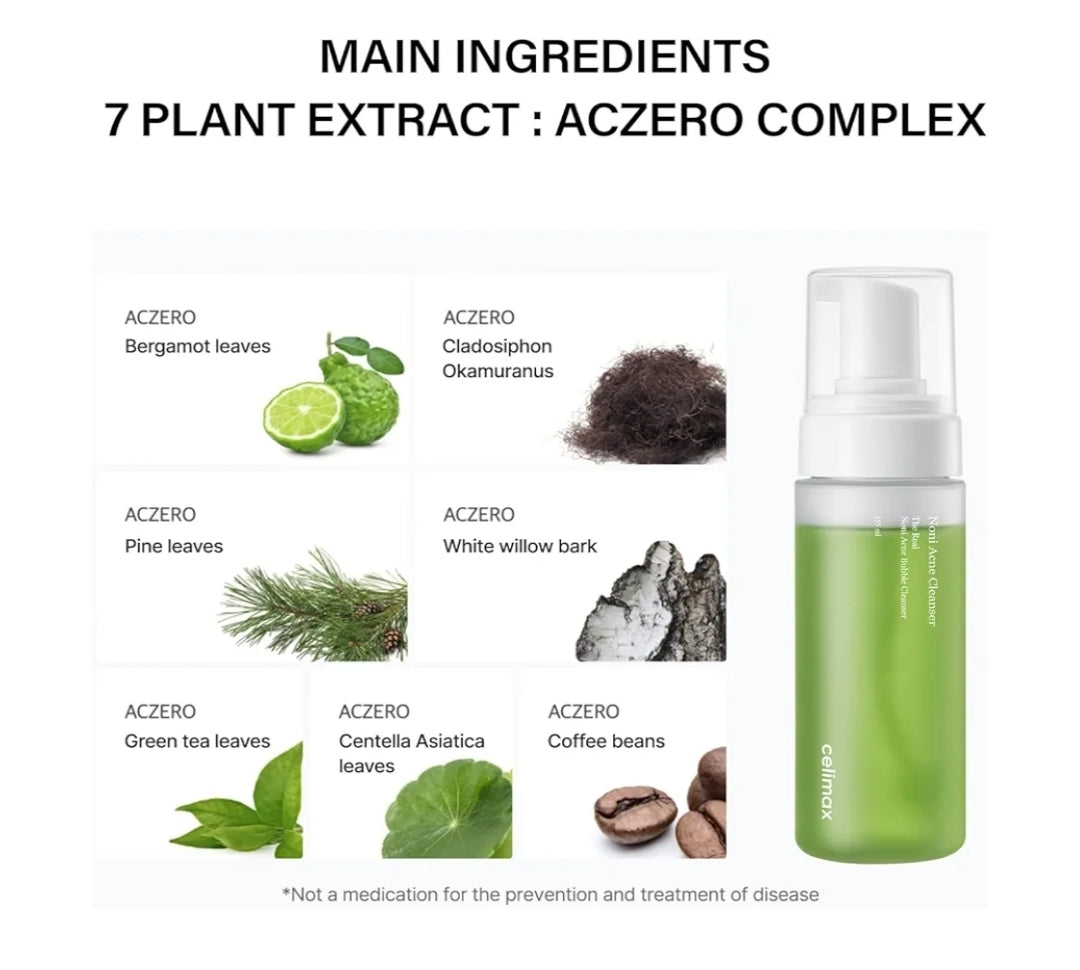 ACZERO-CARE: Aczero complex, made with 7 plant extracts, helps control sebum production to care acne, blackheads & whiteheads, and excess oiliness.