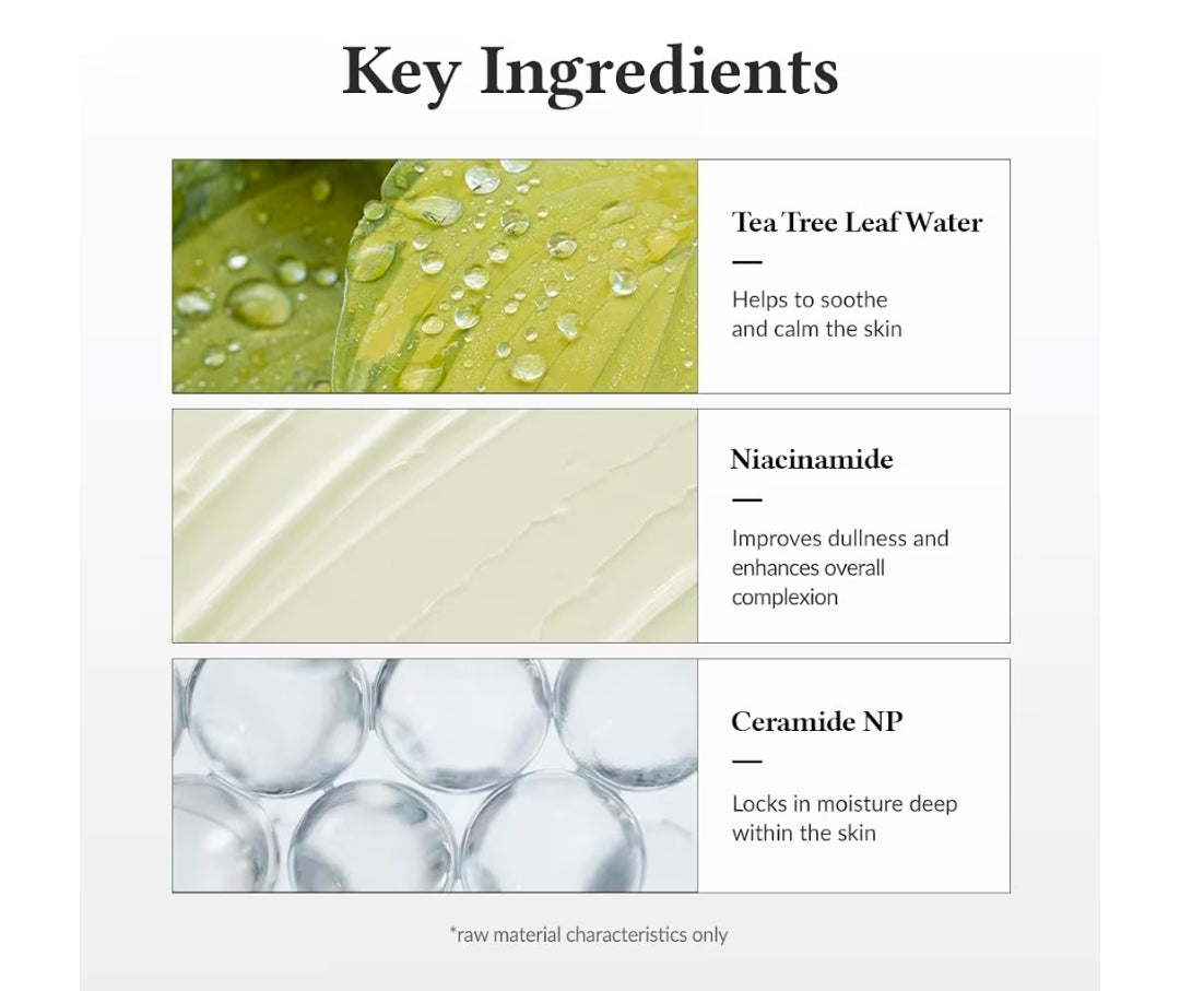 5 SOOTHING INGREDIENTS : Care for sensitive skin and red blemishes caused by external factors with Tea Tree Leaf Water and Madecassoside. These calming ingredients can quickly help soothe your skin effectively by providing moisture.