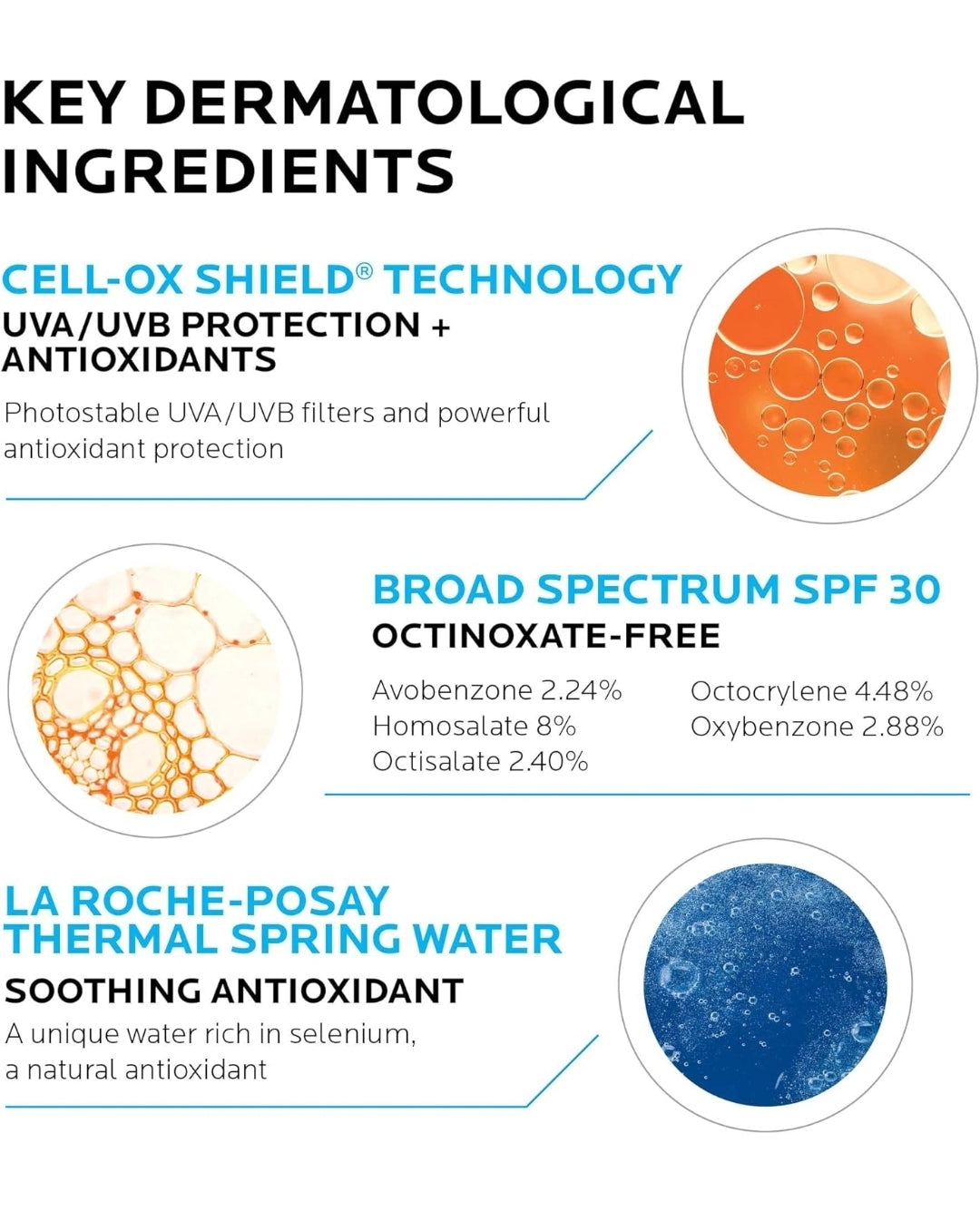 Combines UVA/UVB filters to deliver broad SPF 30 protection & antioxidants to protect skin from free radicals