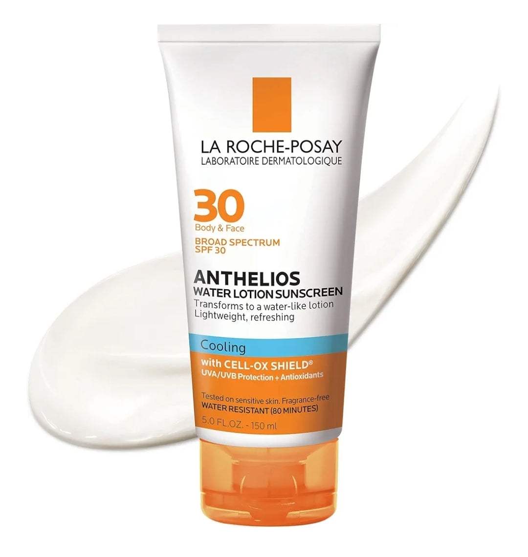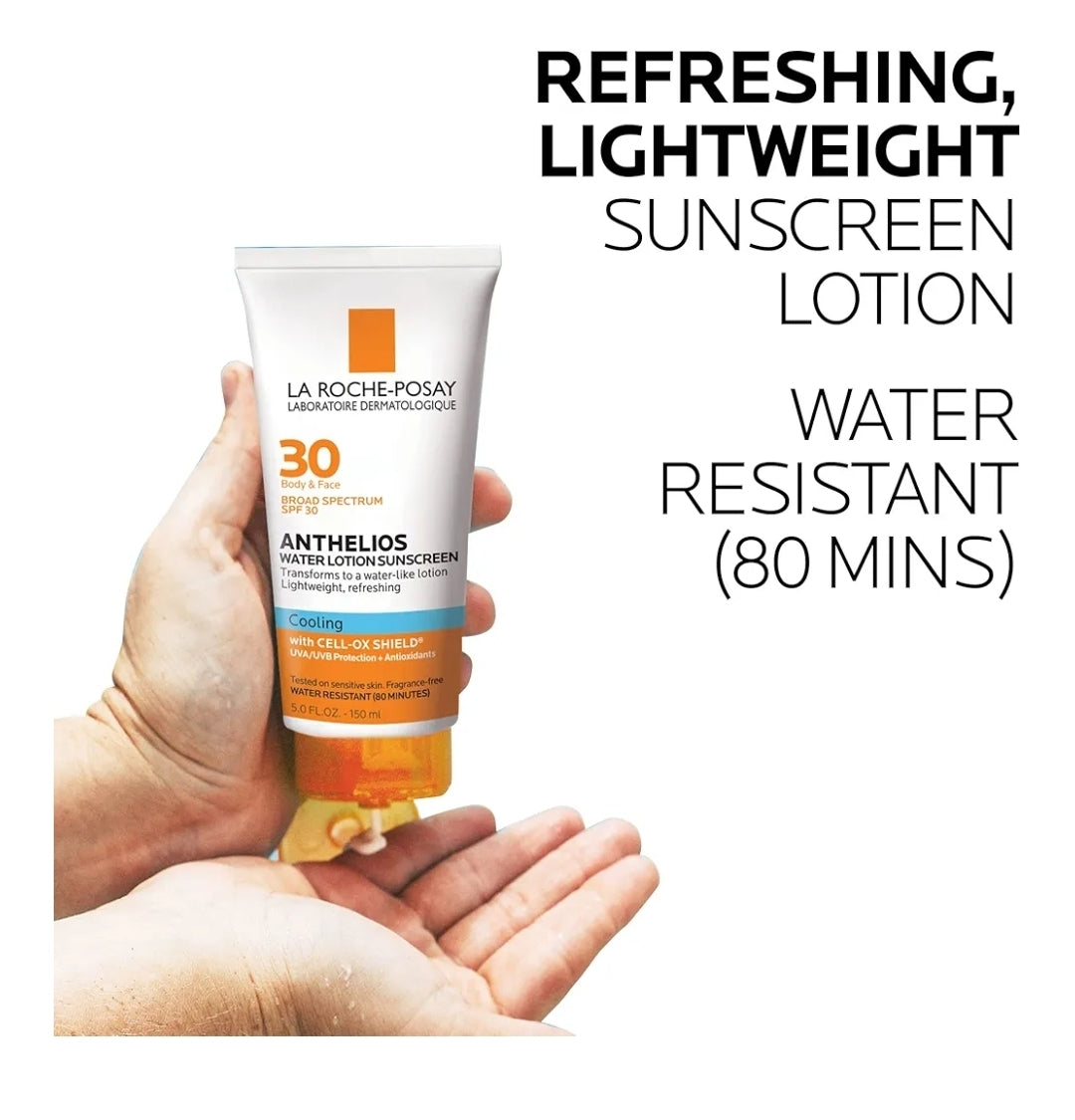 La Roche-Posay Anthelios Cooling Water Sunscreen Lotion for Face & Body SPF 30 - Broad Spectrum SPF + Antioxidants, Fast Absorbing Oil Free