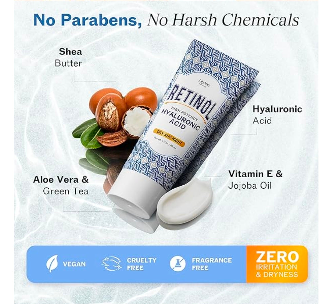 LilyAna Naturals Anti Aging Retinol Face Cream for Women – Wrinkle & Neck Cream for Firming, Retinol Moisturizer for Face with Hyaluronic Acid, Hydrating Night Cream for Fine Lines, Collagen Boost