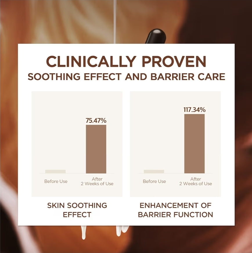 Ceramide NP, similar in structure to the skin barrier, and high quality cicaare formulated to reinforce the skin barrier's strength by enhancing moistureabsorption and repairing damaged skin barriers.
