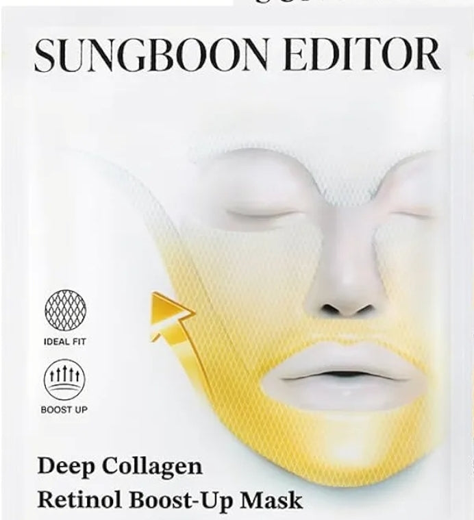 SUNGBOON EDITOR Deep Collagen Retinol Tension Boost Up Mask - Hydrogel, Retinol, Lifted Skin, Firmness, Boosted Volume for Sagging Skin, Double Chin Reducer, V Line Lifting - 1 Mask
