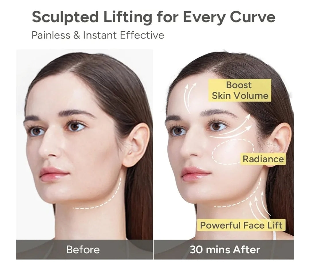 [TARGETED CARE FOR KEY PROBLEM AREAS] It is designed to focus on specific areas like the jawline, smile lines, and forehead. It works to tighten and lift these areas, helping you achieve smoother, more refined facial contours with every use.