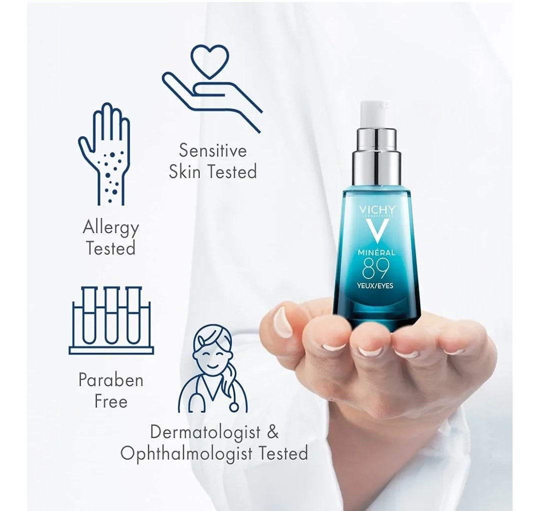 Vichy Mineral 89 Eye Serum, Hyaluronic Acid and Caffeine Cream - Under Eye Cream - Anti aging eye cream for puffiness and bags under eyes. Hydrating eye serum for wrinkles and fine lines